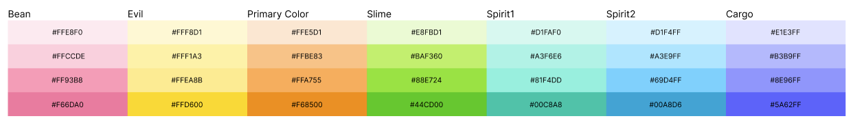 해당 키워드에 착안하여 메이플스토리를 대표하는 몬스터를 파스텔톤이 포함된 컬러셋으로 정의했고, 주황버섯을 서비스의 Primary Color로 지정했습니다.