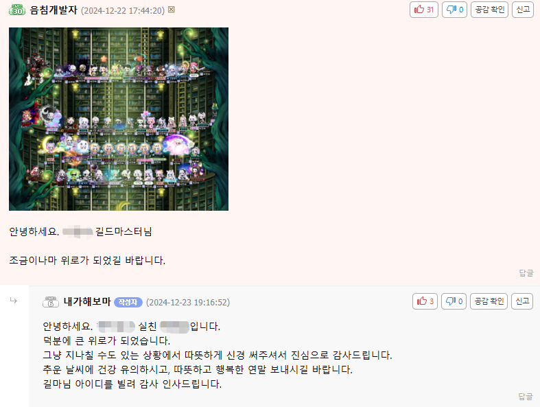 메이플 포토샵을 개발중이던 2024년 겨울, 우연히 게임 커뮤니티에서 어느 길드마스터분의 사연을 접하게 되었습니다.