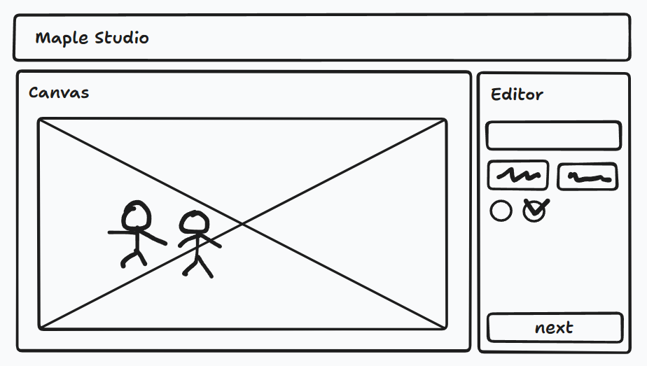 왼쪽에는 사진 연출을 위해 맵과 여러 요소들이 올라갈 canvas, 오른쪽에는 그 요소들을 편집할 수 있는 editor로 섹션을 구분 배치하였습니다.