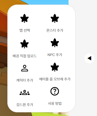 - 메이플스토리 게임 내의 맵을 배경으로 선택할 수 있어야 할 것 (직접 업로드한 이미지를 배경으로 사용할 수도 있음)