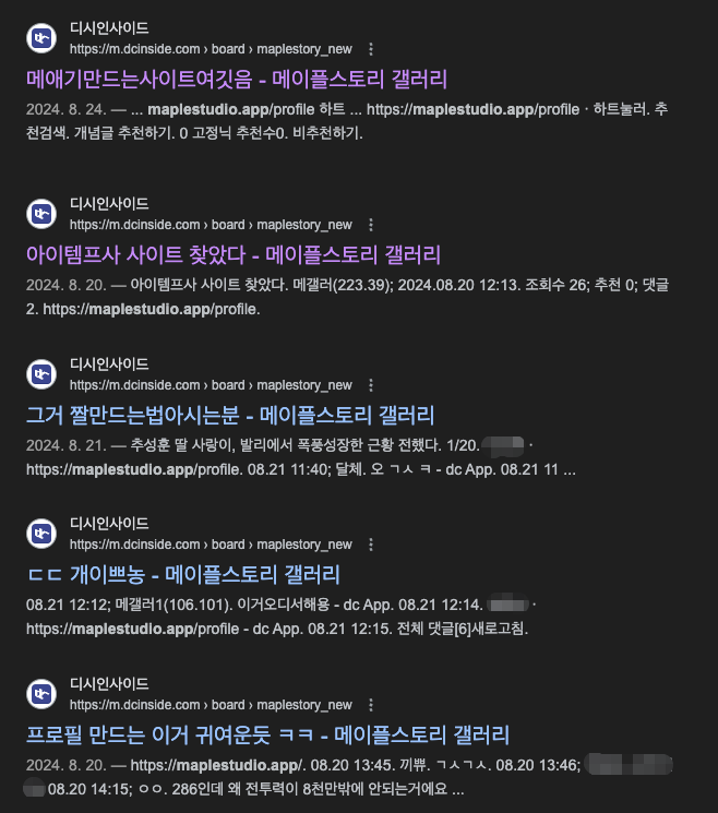 MVP 기능이 완성되었다고 판단되어 2024년 8월 19일 월요일 새벽에 배포 작업을 완료하였고, 오전 10시에 메이플 인벤(커뮤니티)에 서비스를 공개했습니다!