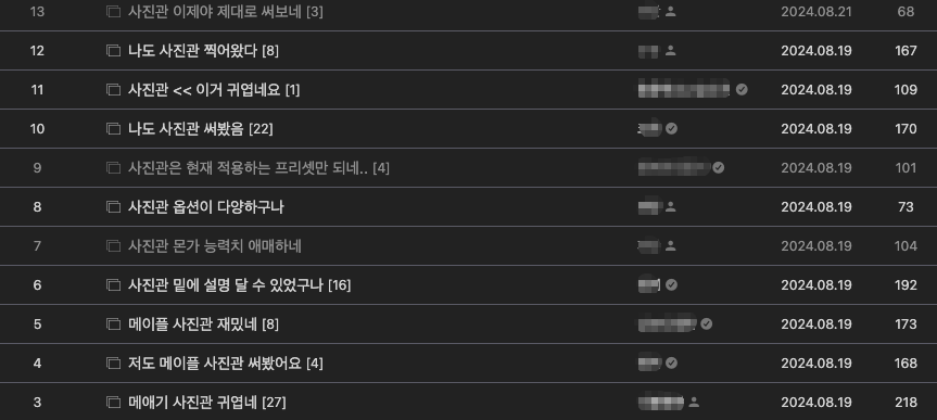 | [메이플 사진관] 기능 업데이트와 유저 이벤트 진행 후기 (2) | 2024.11.25 |
