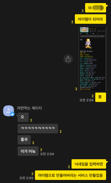 프로토타입 결과물을 지인들에게 공유했습니다. 다들 아이템이 되어버린... 자신의 캐릭터를 보고 귀엽다고 만족했으며, 수정 피드백도 반영했습니다.