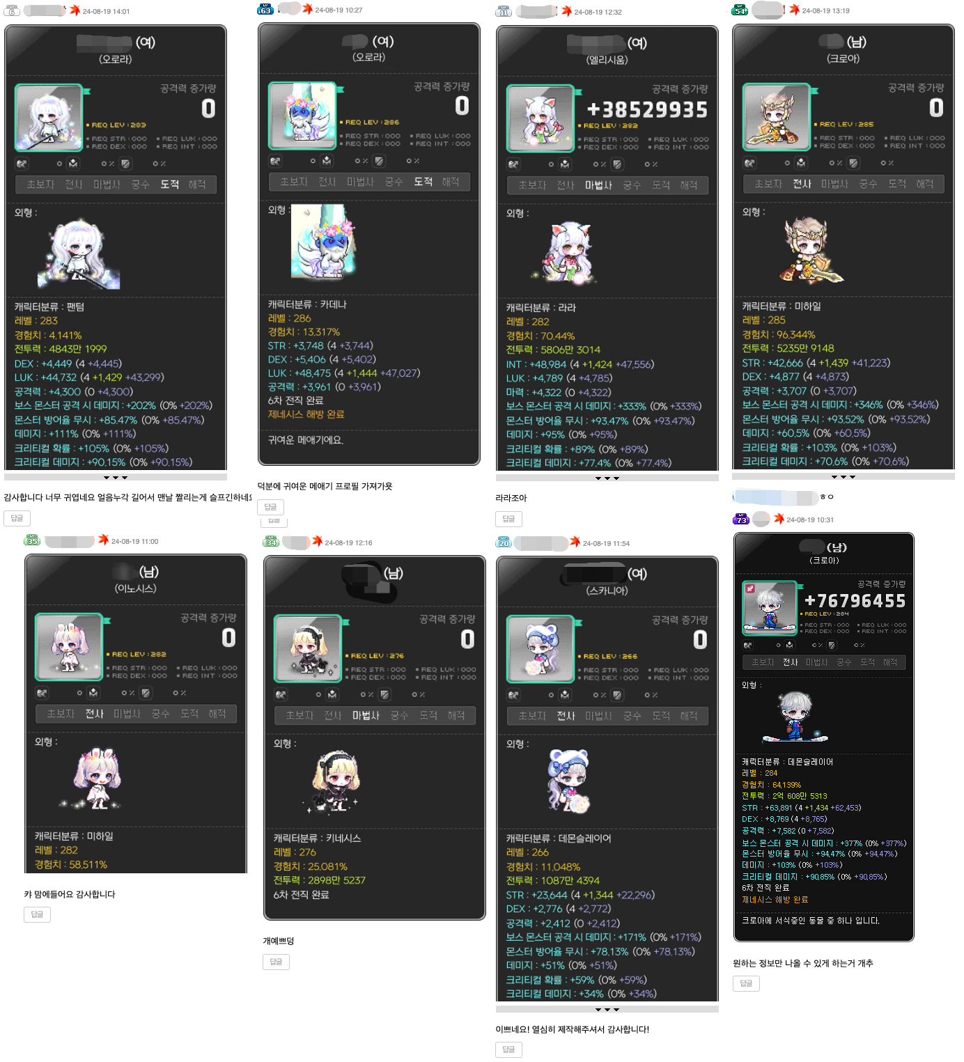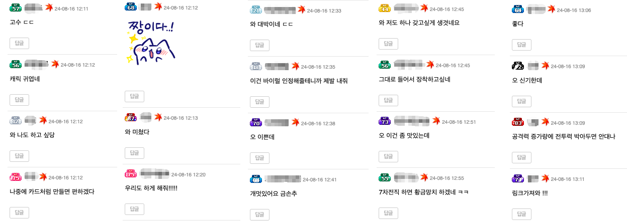 게시물을 하나하나 읽어보며 유저들이 어떤 캐릭터에 애정을 갖고 플레이하는지 구경할 수 있는 시간이었습니다.