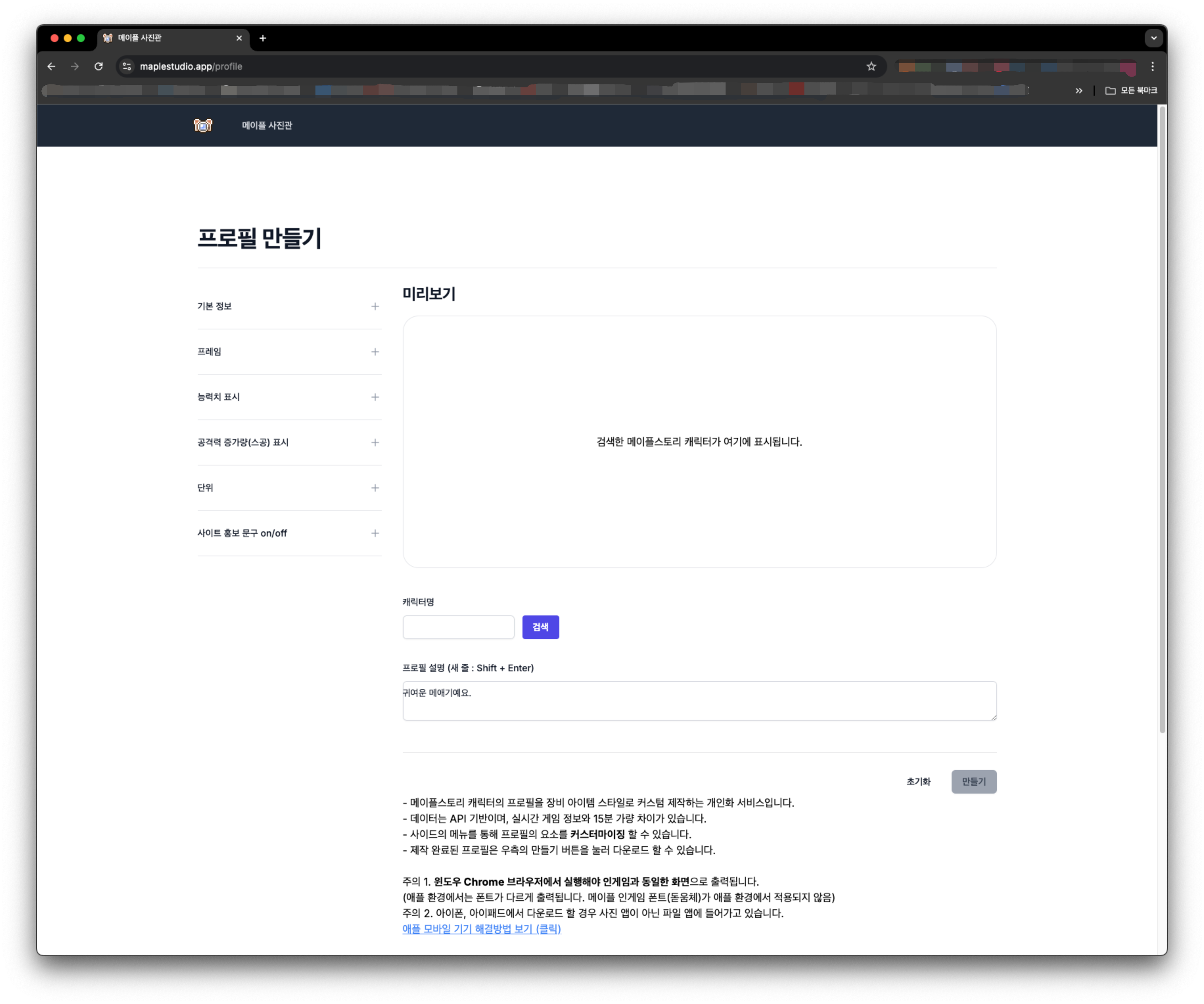 메이플스토리 스타일로 커스텀 프로필을 만들어보세요!