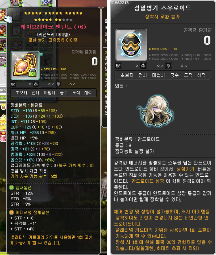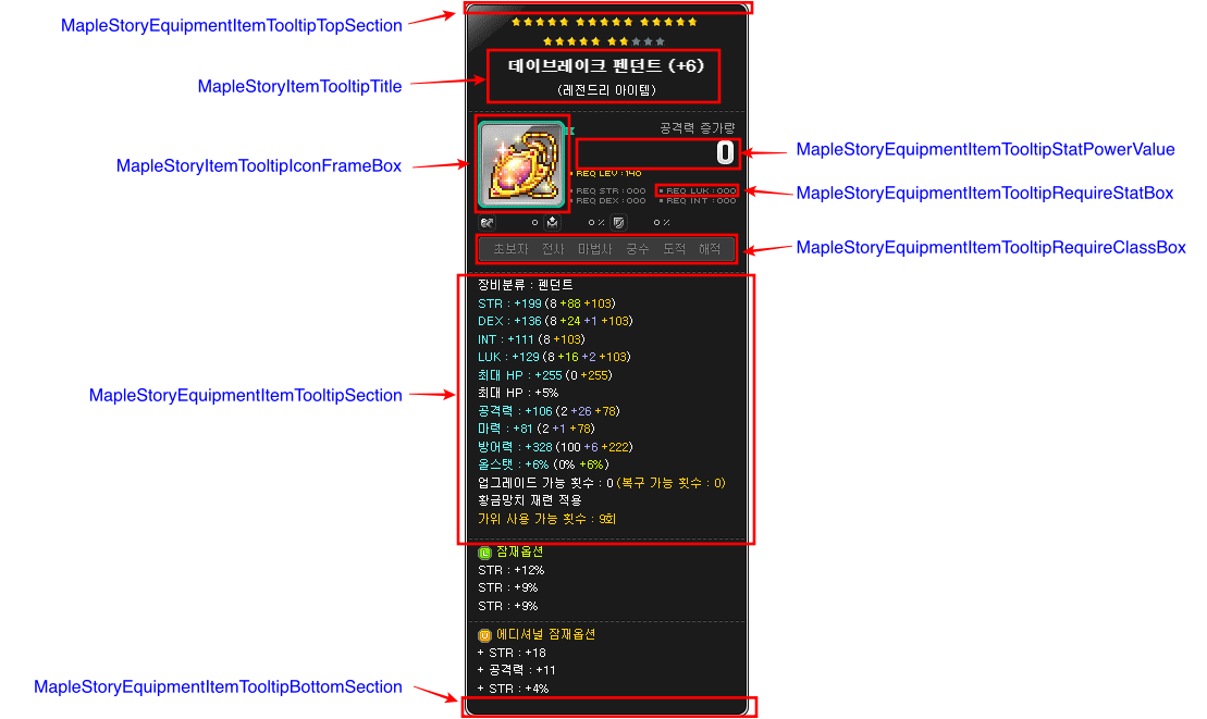 * 메이플스토리 장비아이템 툴팁의 "중앙 섹션"