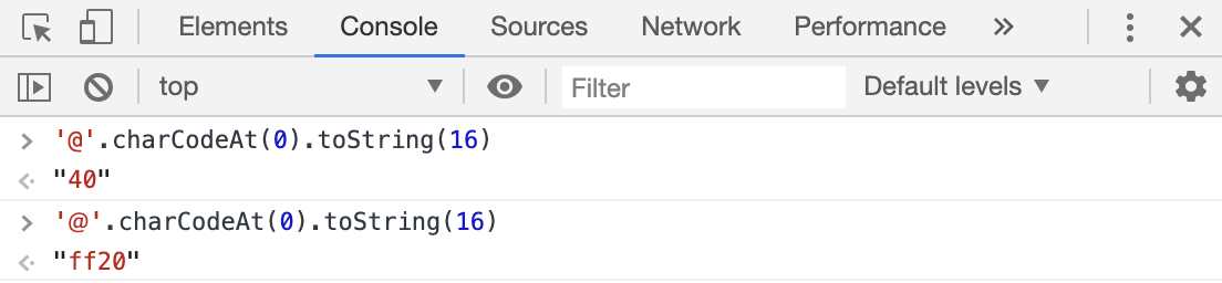 반각 골뱅이의 유니코드는 U+0040, 전각 골뱅이의 유니코드는 U+FF20으로 서로 다른 문자로 인식하는 것이 확실해졌다.