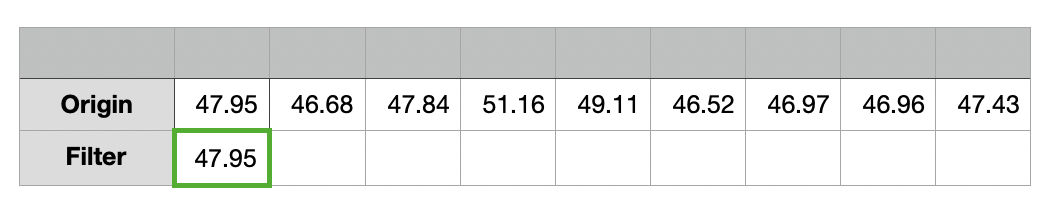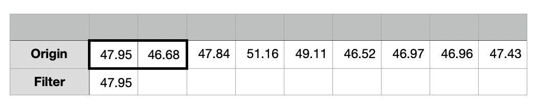표족하게 튄 원본 데이터에 비해 필터링된 데이터는 변화량이 비교적 완만해진 것을 볼 수 있다.