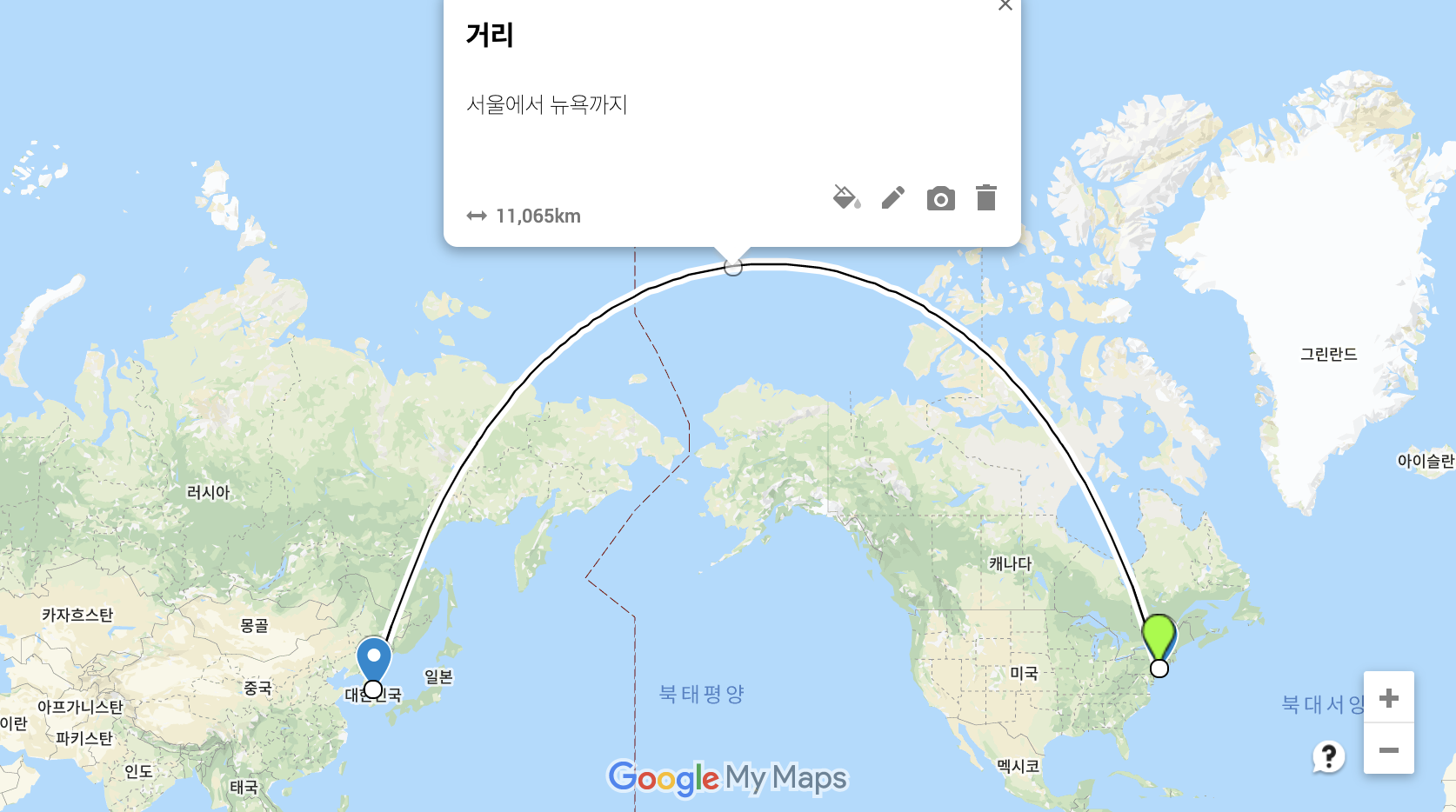 지구에서 두 점 사이의 거리 구하기