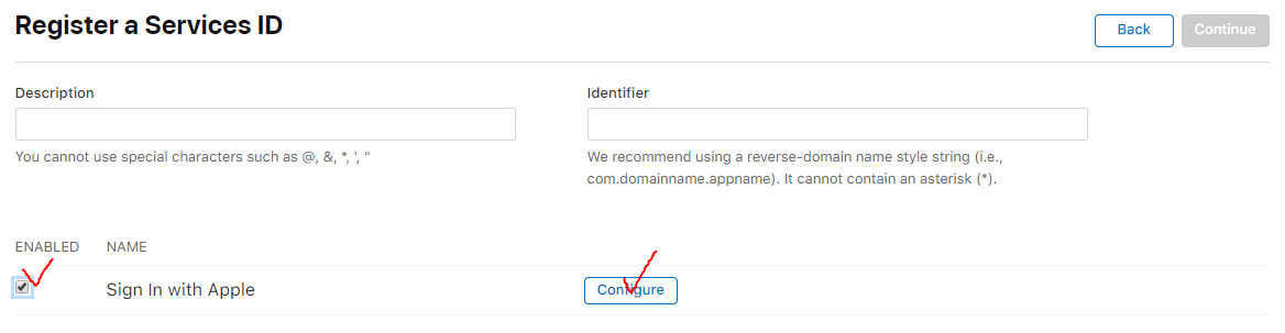 Sign In with Apple을 활성화 해주고 Configure 버튼을 클릭.