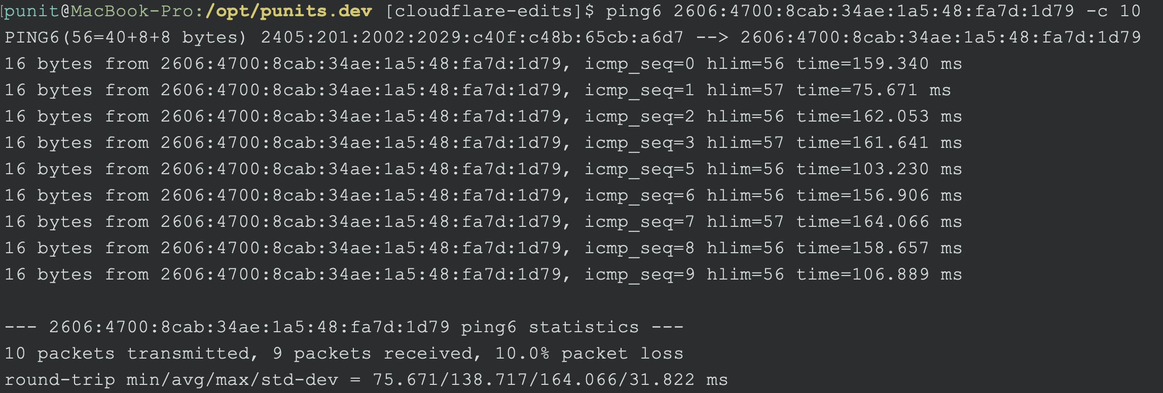 - 저와 CloudFlare Edge 인스턴스 사이의 지연 시간은 약 138ms였습니다.