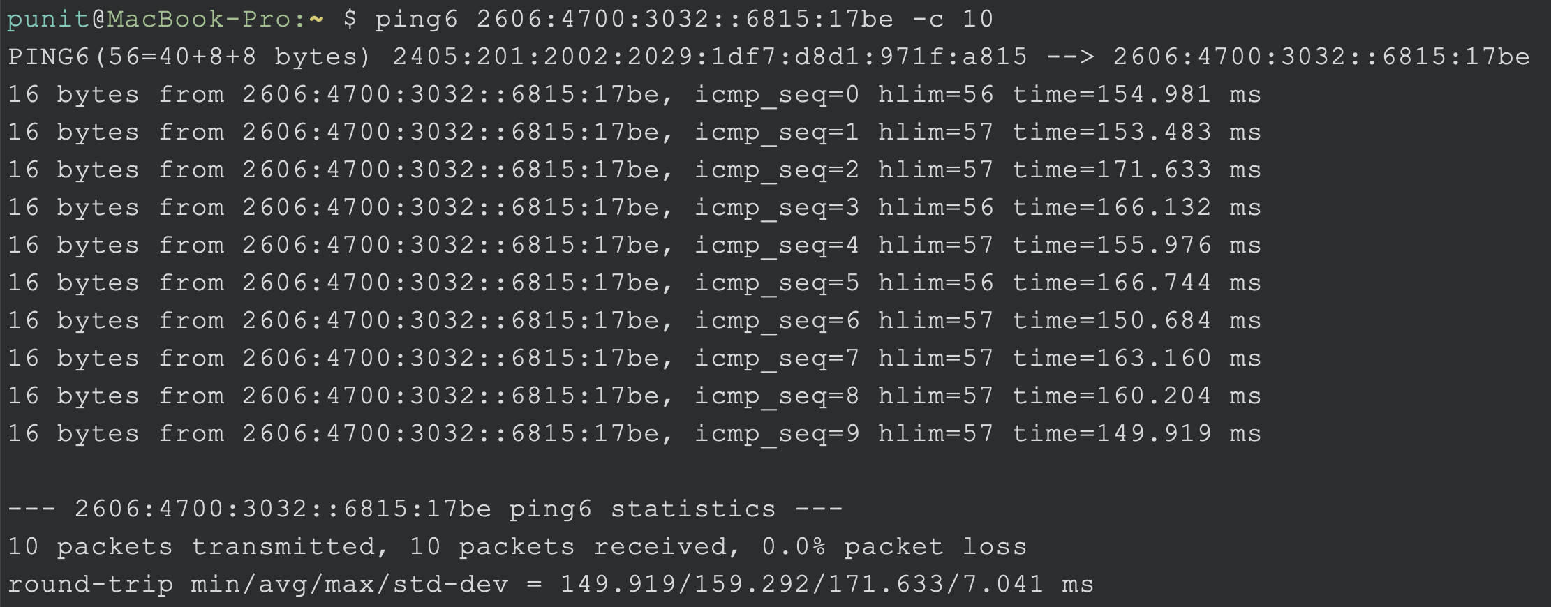 CloudFlare IP 주소의 지연 시간에 대해 이야기하기 전에, 위 응답의 Cf-Ray 헤더를 강조하고 싶습니다. CloudFlare 공식문서에는 제 요청을 처리한 데이터 센터의 위치가 Cf-Ray에 포함되어 있다고 명시되어 있습니다. 따라서 인도에서 출발하여 인도에 원본 서버가 있는 이 요청이 AMS(암스테르담-네덜란드)에서 처리되었음을 알 수 있습니다.