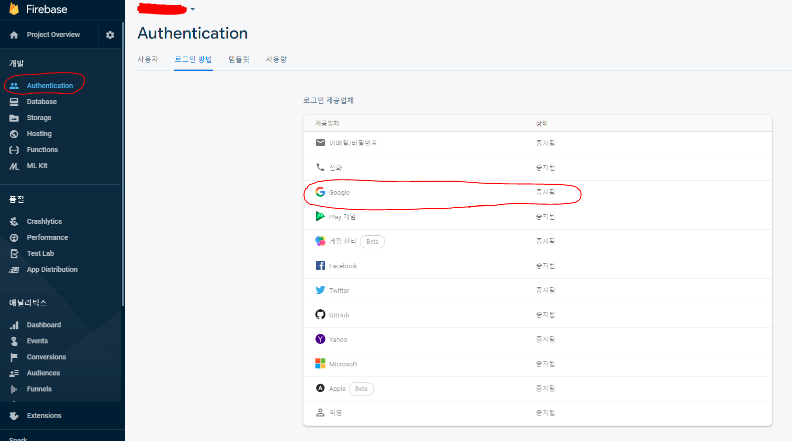 1. Firebase Console에서 Google Login 활성화