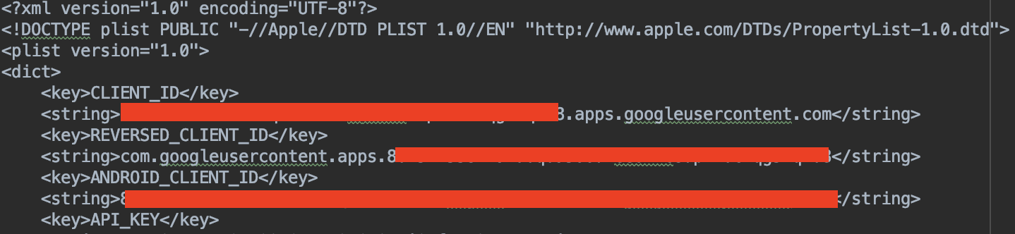 ios/Runner/ 위치에 GoogleServices-Info.plist를 넣었으면 파일을 열어 REVERSED_CLIENT_ID의 값을 복사한다.