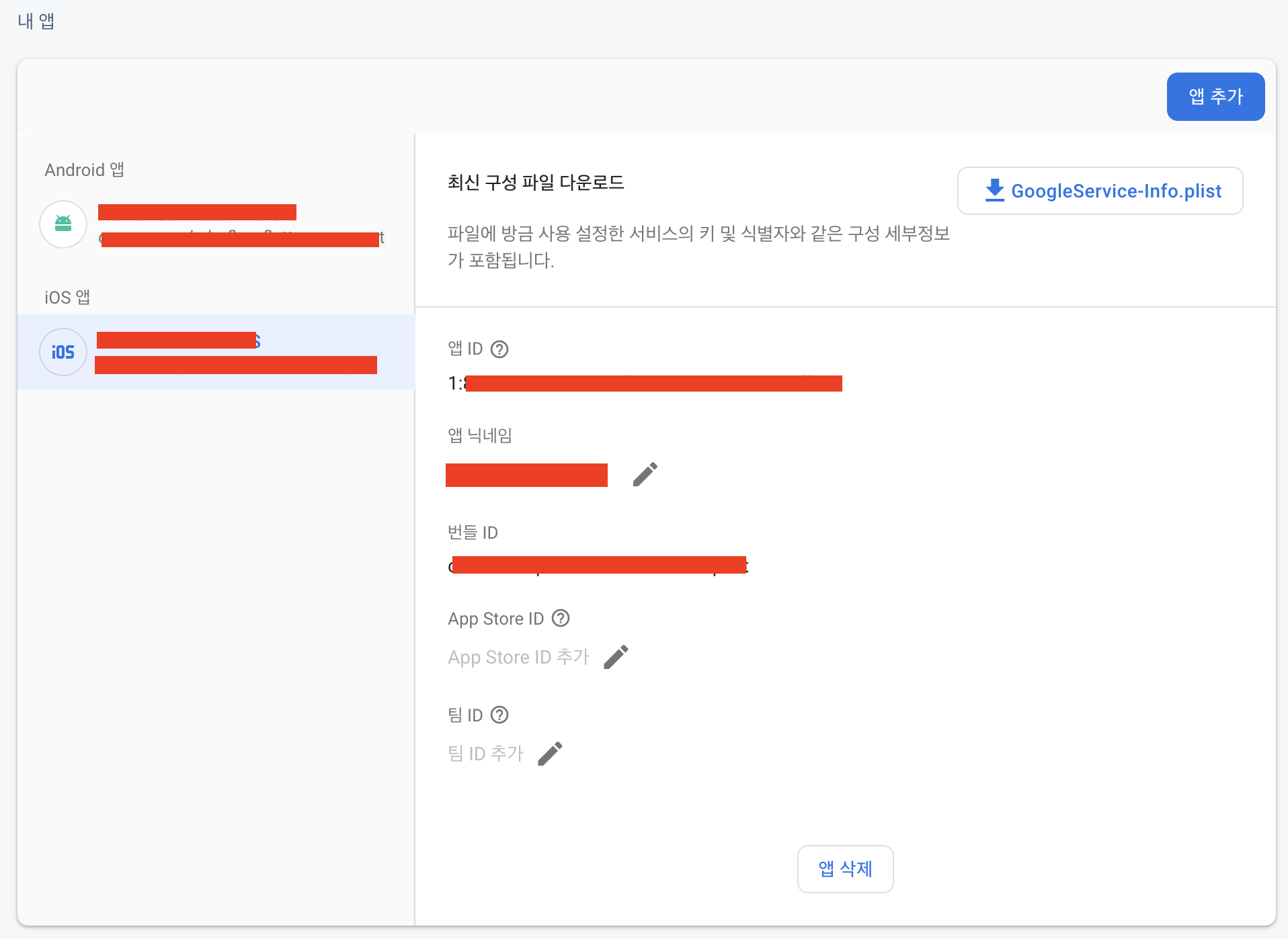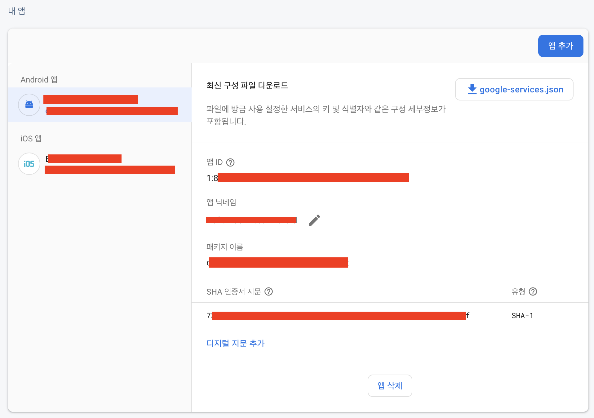 파일이 없다면 파이어베이스 콘솔의 내 앱 항목에서 다운받을 수 있다.