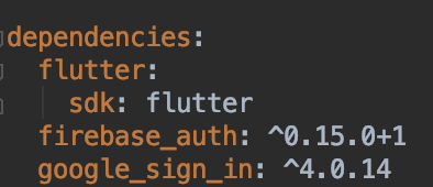 pubspec.yaml에 firebase_auth, google_sign_in 패키지를 추가하자.