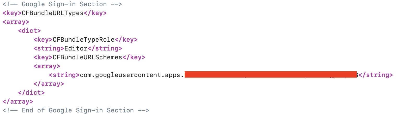 복사한 REVERSED_CLIENT_ID 값을 이용해 Info.plist에 커스텀 URL을 등록한다.