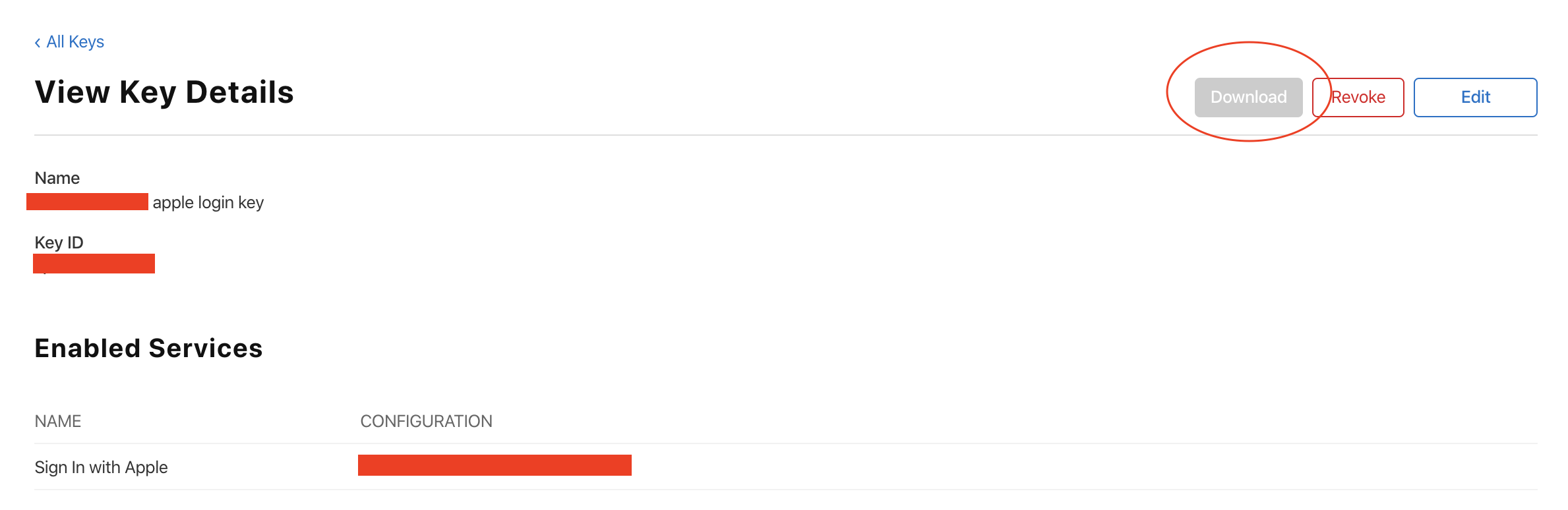 필요한 항목은 서비스 ID, Apple 팀 ID, 키 ID, 비공개 키다. 모두 Apple 개발자 페이지에서 찾을 수 있다.