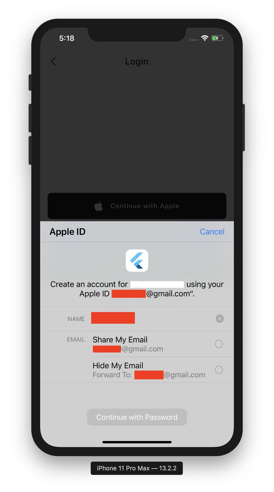 그럼 위와 같은 UI가 나타난다. 대충 애플 로그인에 대해 소개하는 화면인듯... Continue 터치.