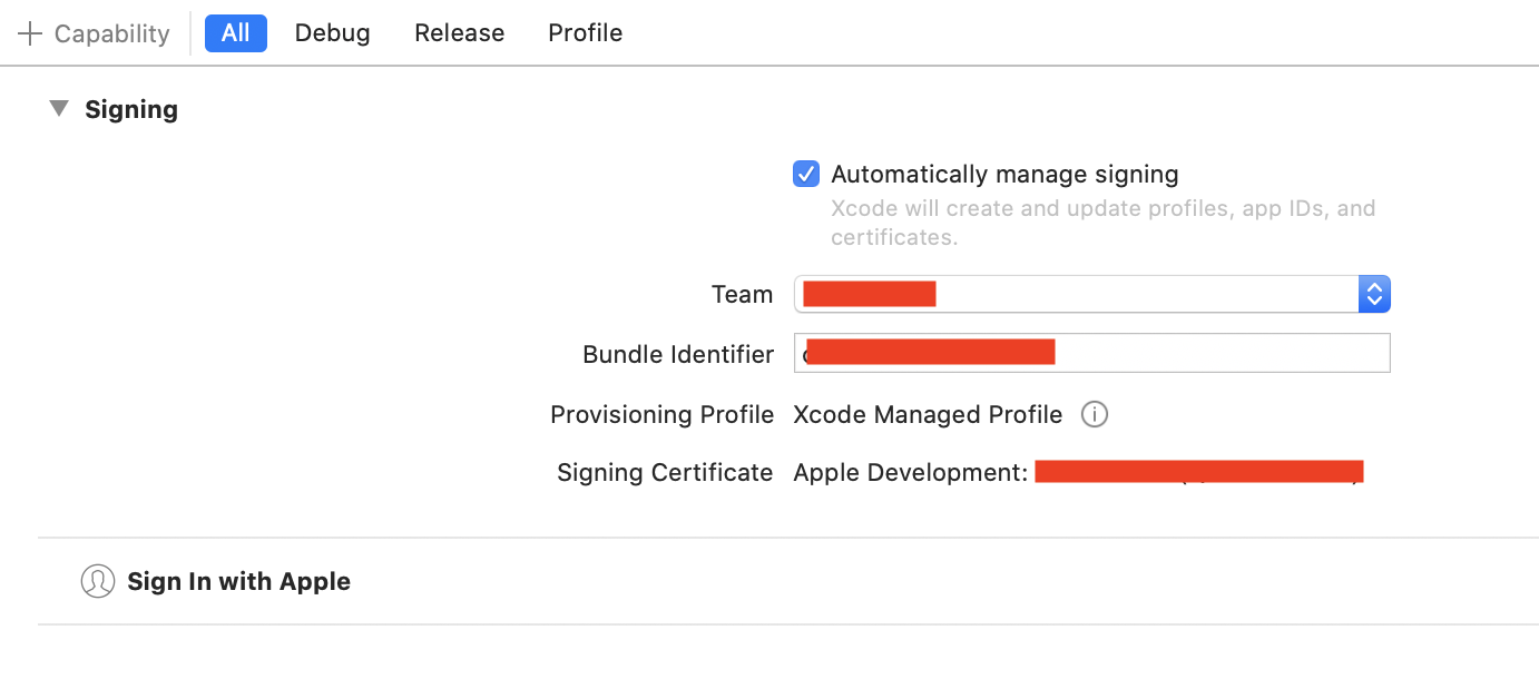 이 작업은 Apple 개발자 페이지에 Sign In with Apple 설정이 미리 되어있어야 한다. 안되어있다면 위의 선행 작업 항목을 다시 읽고 오자.