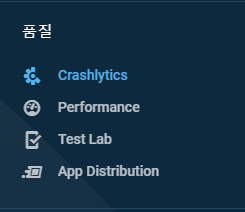 파이어베이스 콘솔에서 "품질 >> Crashlytics" 항목으로 들어간다.