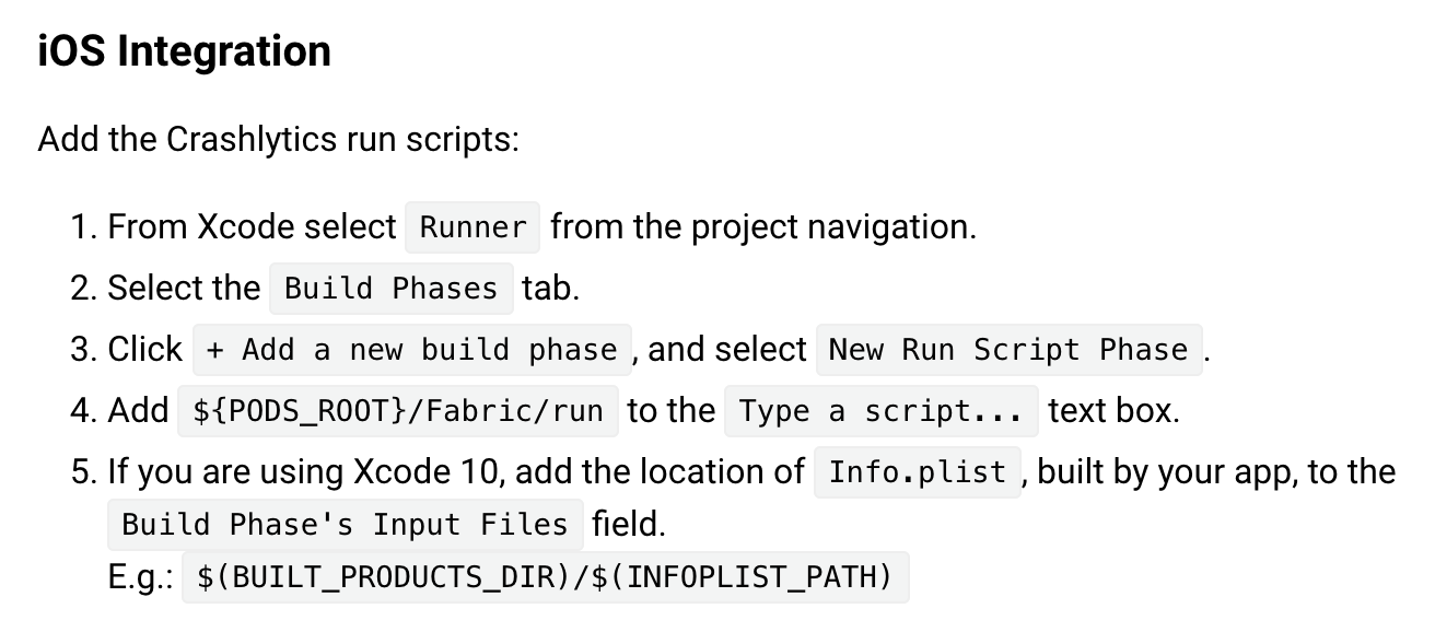 스크립트를 입력할 수 있는 텍스트 박스가 나오는데 거기에 ${PODS_ROOT}/Fabric/run을 추가한다.