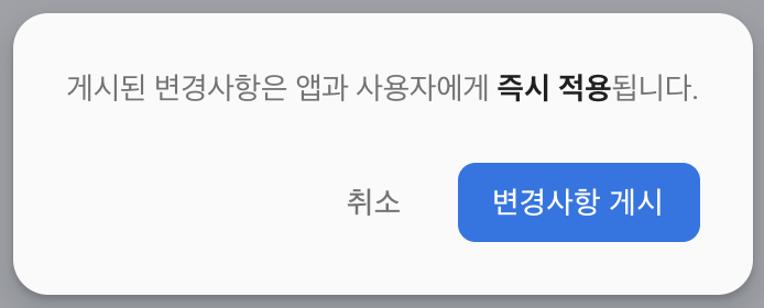 데이터를 알맞게 구성했다면 "변경사항 게시" 버튼 클릭