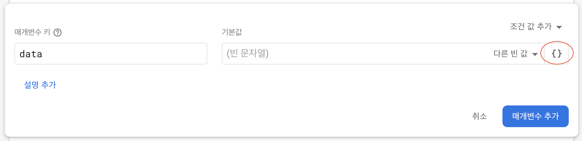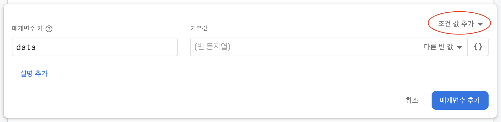 값을 채워주고 "매개변수 추가" 버튼 클릭