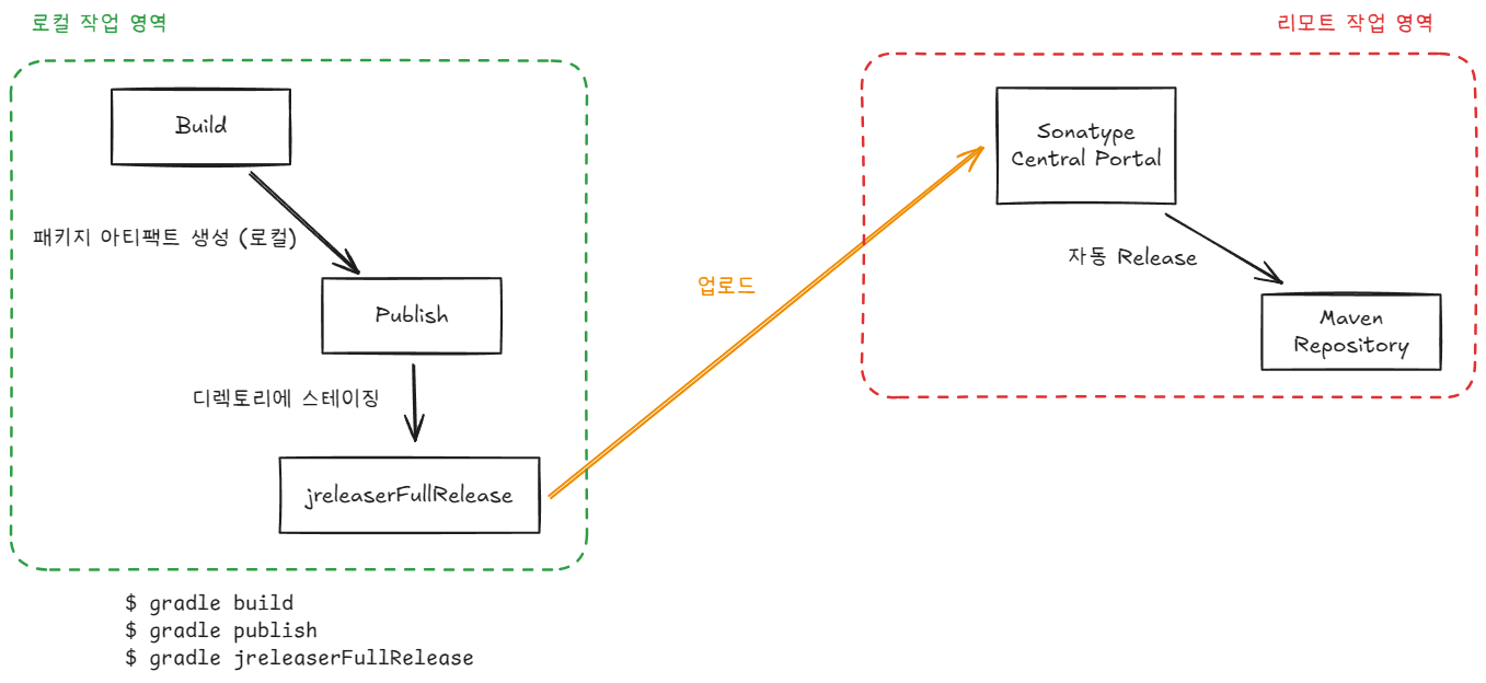 로컬 디렉토리에 스테이징된 아티팩트를 central portal로 배포하기 위해서는 publish 이후에 jreleaserFullRelease 명령어를 실행해야 한다.