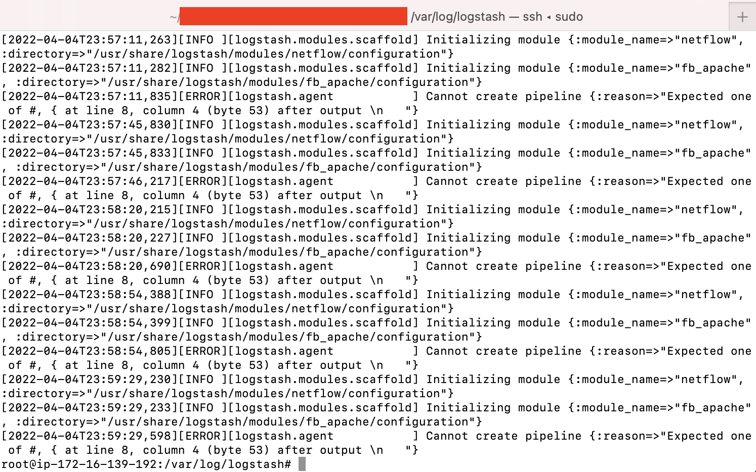 Logstash 초기화 작업 중에 발생하는 Cannot create pipeline 에러를 해결해보자. 서비스가 active 상태여도 발생할 수 있다.