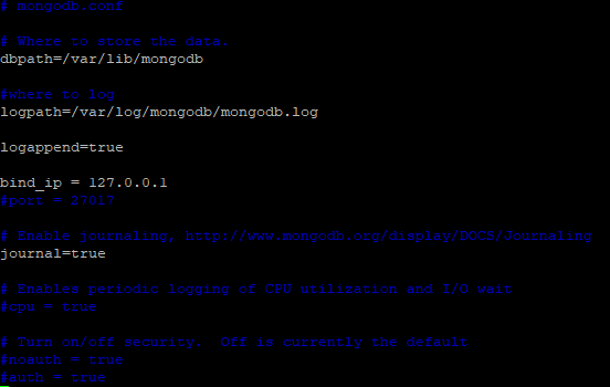 여기서 bind_ip는 DB에 연결할 수 있는 IP를 뜻하고, auth는 DB에 연결할 때 계정 검사를 할 지 여부를 뜻한다.