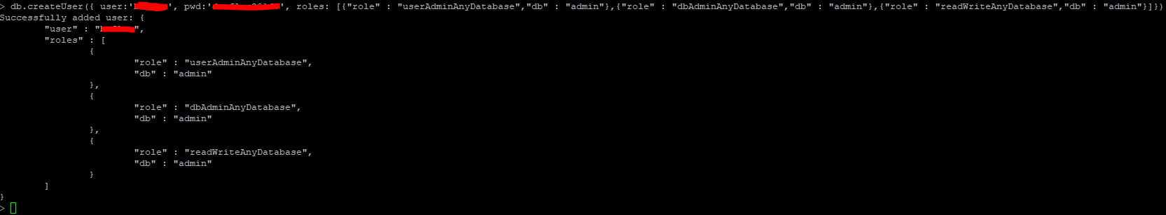 db.getUsers()로 확인해보니 성공적으로 계정이 생성된 것을 확인할 수 있었다.