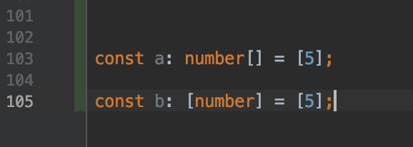 두 번째, 타입을 [] 괄호의 안쪽에 선언. 사실 이건 number 요소가 1개로 고정된 배열, 즉 튜플이다.