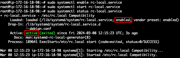$ sudo systemctl start rc-local.service