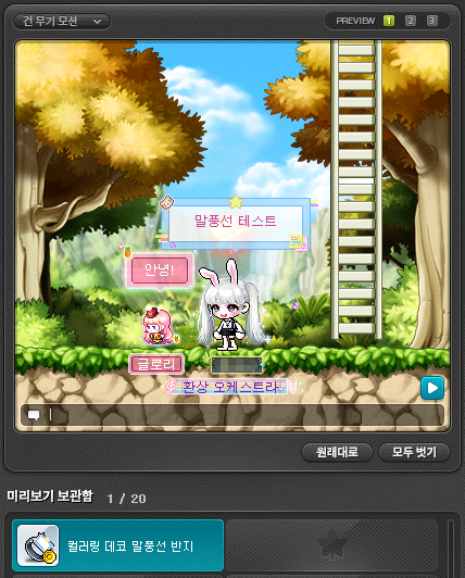잠시 게임 내부의 이야기를 해보겠습니다. 메이플스토리에서는 캐릭터의 외형을 꾸밀 수 있는 기능과 비슷하게 말풍선과 명찰을 꾸밀 수 있습니다. 커스터마이징은 안되지만 미리 만들어진 모양으로 변경할 수 있도록 장착 가능한 반지 아이템의 형태로 존재하며 모든 플레이어가 하나씩은 꼭 착용할 정도로 인기있는 꾸밈 요소중 하나입니다.