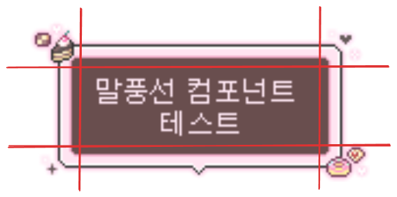 n, w, c, e, s 영역은 말풍선의 텍스트 분량에 따라 길이가 가변적으로 변합니다. 늘어난 영역은 패턴형 이미지 케이스를 고려해 타일링(Tiling) 기법으로 처리하였습니다.