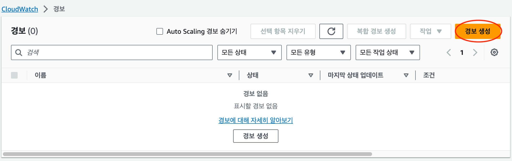 - CloudWatch 경보 생성