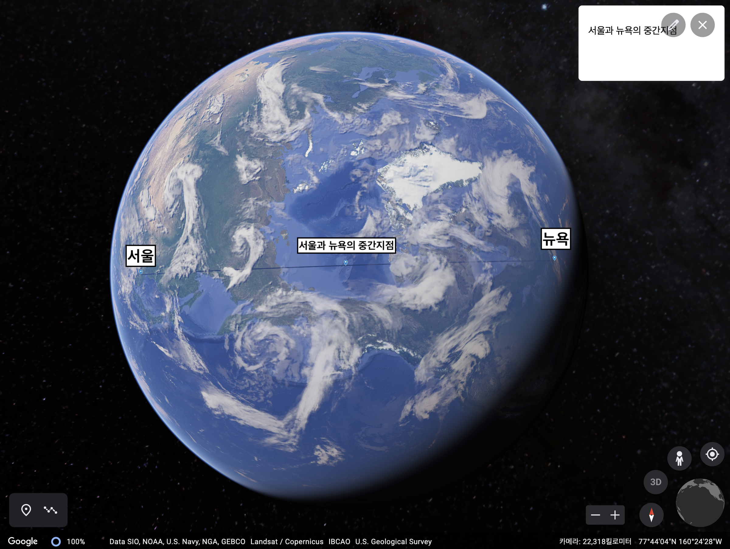 지구에서 두 점 사이의 중간지점 구하기
