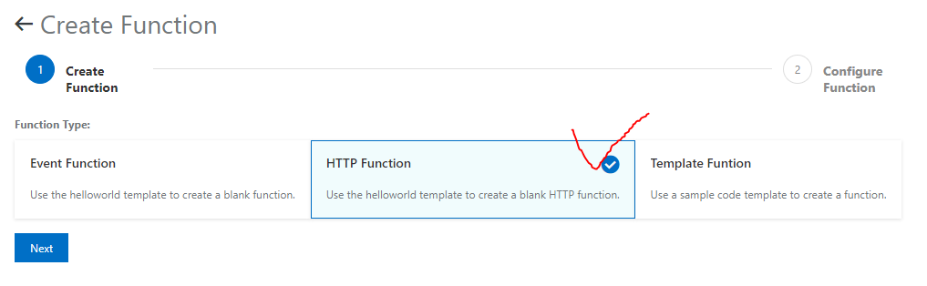 Function Compute을 등록하는 화면이 뜬다. 3가지 타입의 함수가 있는데 앞의 두 개만 알면 된다.