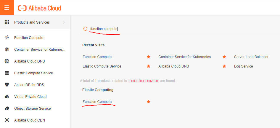 메뉴에서 "Function Compute"를 찾아 들어간다.