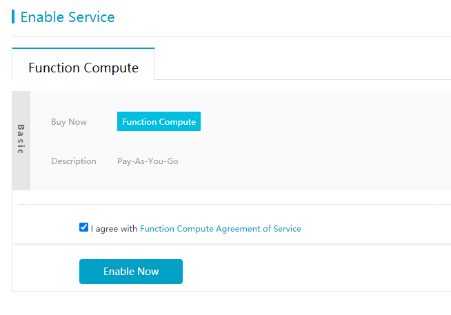 Function Compute를 사용하기 위해선 활성화 하는 작업이 필요하다.