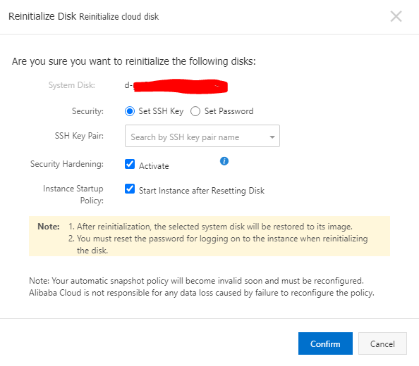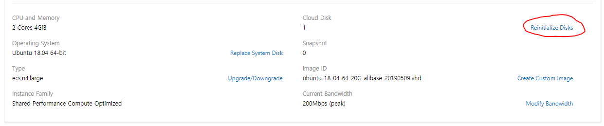 알리 클라우드 환경에서 ECS 인스턴스의 Disk 및 운영체제를 초기화하는 방법을 알아보자.