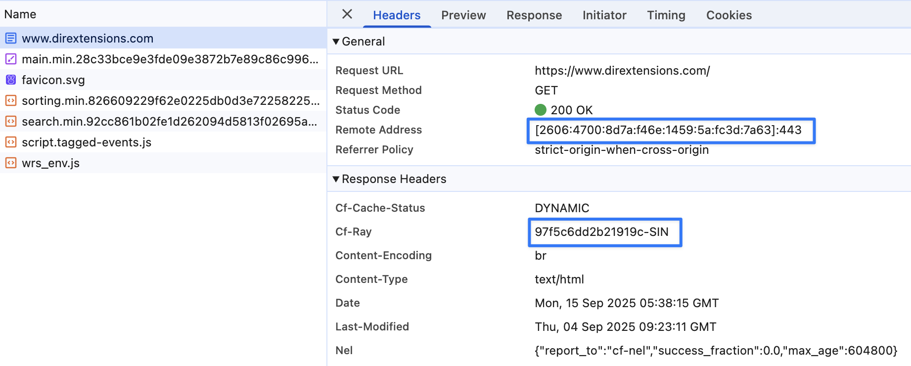 응답 Cf-Ray 헤더는 제 요청이 여전히 싱가포르 데이터 센터에서 처리되고 있음을 보여주었습니다.