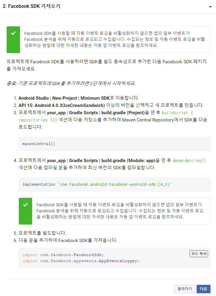 이 글은 페이스북 프로젝트 생성 절차를 마친 이후의 작업을 다루므로 페이스북 프로젝트를 생성하지 않았다면 아래 링크에서 먼저 작업을 완료해야한다.