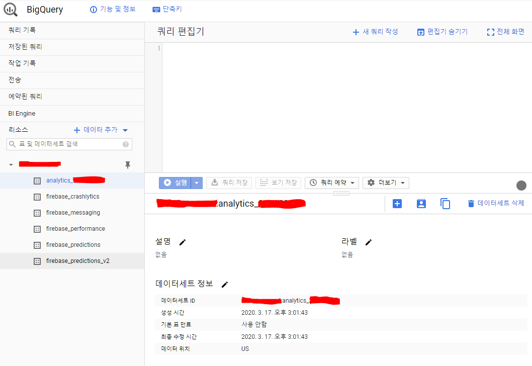 앞으로 파이어베이스에서 발생하는 analytics, crashlytics 등의 모든 원시 데이터는 BigQuery에 쌓이게 된다.