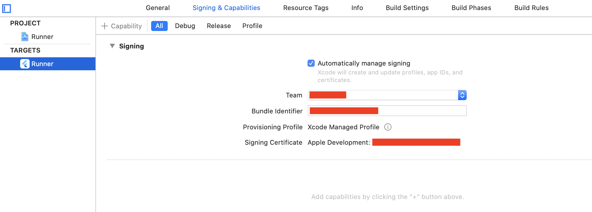 Xcode로 프로젝트를 열고 Signing & Capabilities 탭에서 +Capability 버튼 클릭