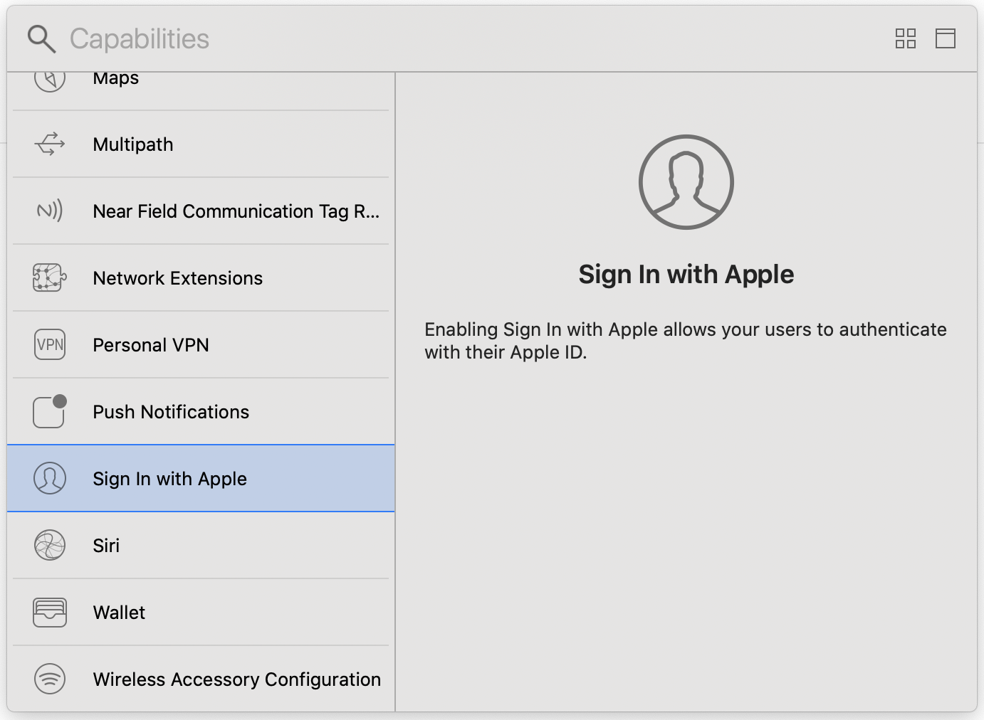 이 작업은 Apple 개발자 페이지에 Sign In with Apple 설정이 미리 되어있어야 한다. 안되어있다면 위의 선행 작업 항목을 다시 읽고 오자.
