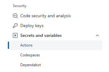 repository에 접속하여 Settings 탭을 클릭하여 Secrets and variables 항목의 Actions를 클릭한다.