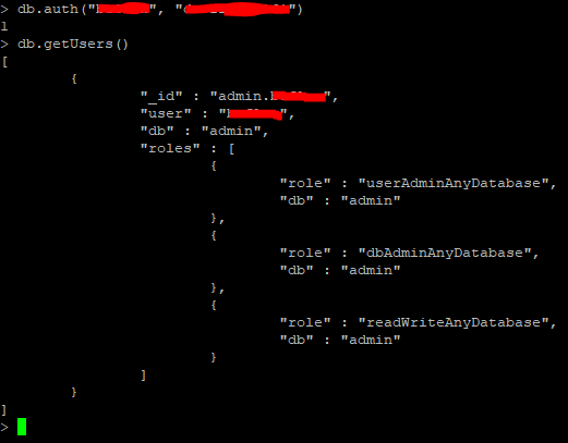 db.getUsers()로 확인해보니 성공적으로 계정이 생성된 것을 확인할 수 있었다.