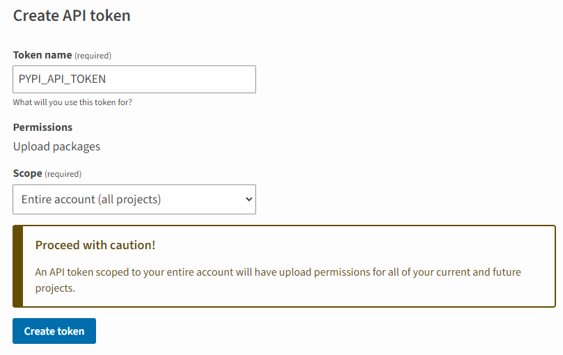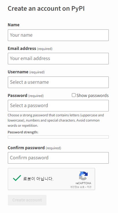 PyPi에 패키지를 업로드하기 위해서는 api token이 필요한데 발급받기 위해서는 pypi 웹사이트의 계정이 필요하다.
